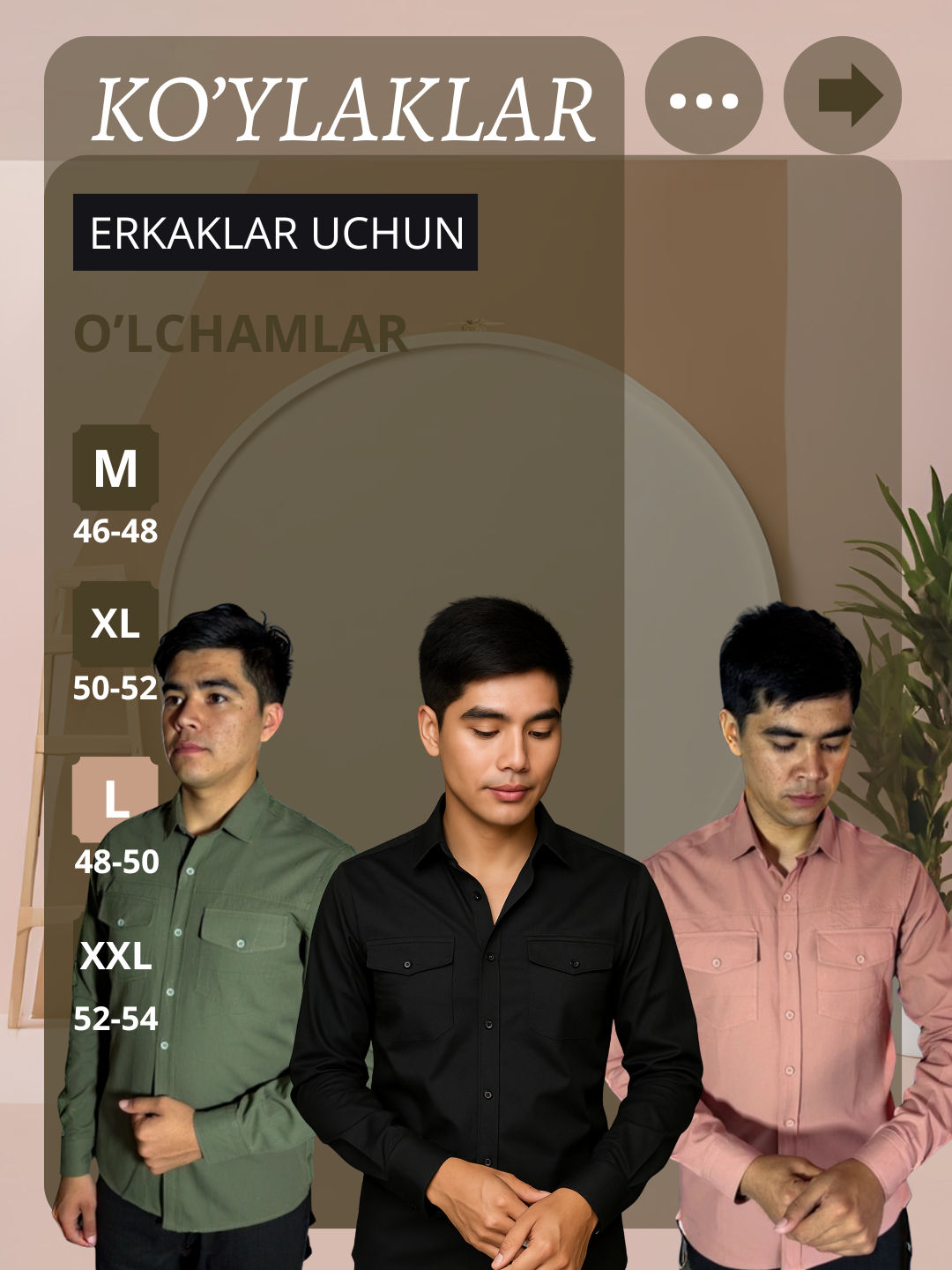 O'lchamlar: 46-48-50-52-54